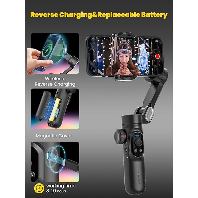 Smart X ProジンバルはVlog、TikTok、スケートボードで散歩や跳躍の対象を追跡します。Smart X Proのアップグレードされた追跡バージョンは顔、子供をより高い精度で認識し、自動追尾します。コントロールジョイスティックでさらに速く移動します。不安定なスマホ撮影ビデオに別れを告げましょう。 Aochuan Smart X Proの高度で強力な3軸ブラシレスモーターとスマート4.0安定なシステムので、スマホ、携帯電話用ジンバルは、最小限の労力でスマートフォンのビデオを着実に安定させます。