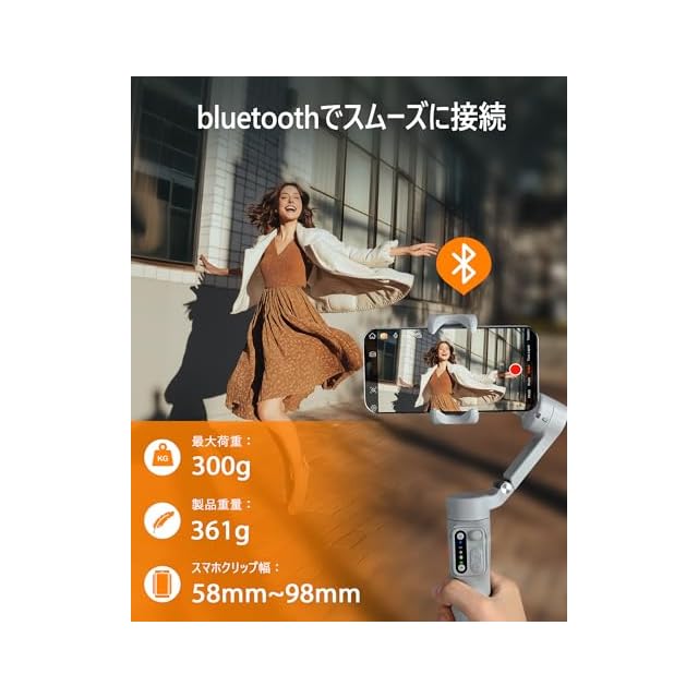 商品名:hohem X3 SE ジンバル 3軸スマホジンバル 着脱式リモコン&外部三脚付 11時間駆動 専用アプリで顔追跡 ジェスチャー操作 美顔 手ブレ補正 スタビライザー 折りたたみ式&軽量 Android&iPhone用ジンバル 日本語対応アプリ グレー