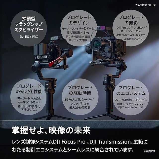 商品名:DJI RS 4 Proコンボ 3軸ジンバルスタビライザー 一眼レフ & シネマカメラ用 Canon/Sony/Panasonic/Nikon/Fujifilm 第2世代ネイティブ縦向き撮影 積載量 4.5kg 映像トランスミッターとFocus Proモーターを同梱