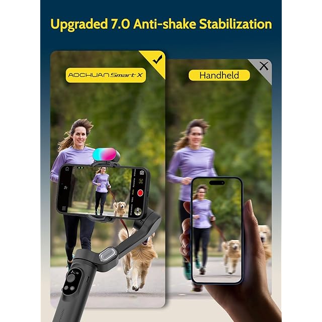 [Smart 7.0 アンチシェイク] この携帯電話ジンバルは、高度な手ブレ防止テクノロジーを採用し、3つの強力なブラシレスモーターで卓越した安定性を実現し、フィルムが安定して滑らかに保たれ、高品質のビデオを実現します。 手ブレ防止のスマートフォンジンバルとして、ビデオブログ、スポーツ、旅行などのための携帯電話の三脚や自撮り棒としても使用できます。