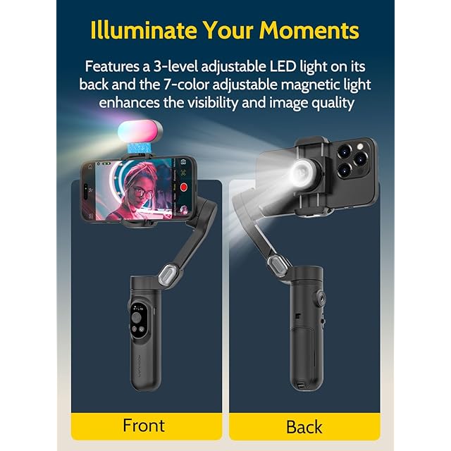 [RGB LEDライト] 7色の調節可能な磁気ライトは、スマートフォンのジンバルスタビライザーやその他の機器に磁気で取り付けるだけで、適切な背景色で撮影できます。 効率的なバッテリーは、フル輝度で最大180分、最低設定で最大5時間使用できます。 これにより、動画を録画したりビデオブログを録画したりする際に、よりクリエイティブなシナリオを求めるYouTuberやブロガーに最適です。