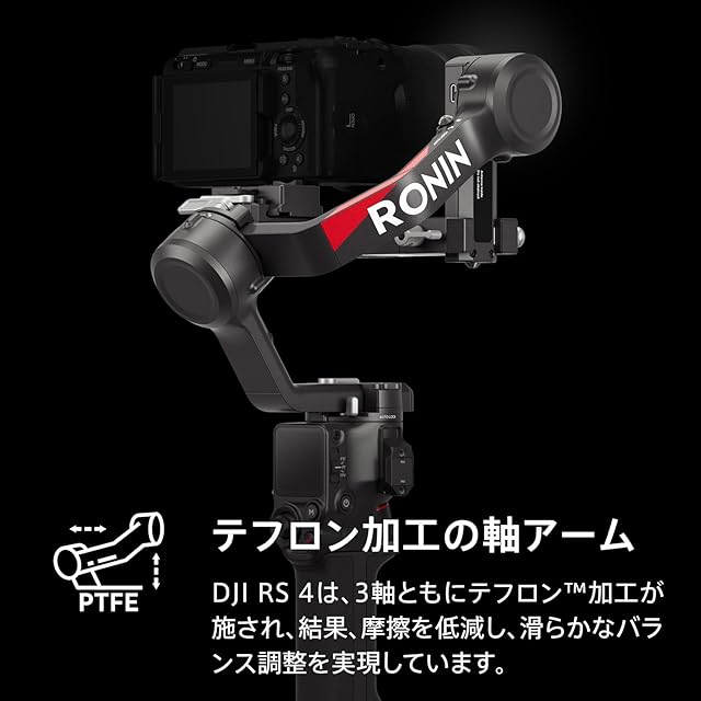 ✅[テフロン 加工軸アームで、よりスムーズにバランス調整 ]- DJI RS 4は、3軸すべてにテフロン 加工が施され、摩擦を軽減し、超高精度のバランス調整を実現しています。