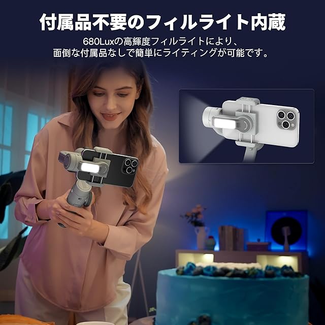 内蔵照明、付属品不要:CINEPEER SMOOTH 5Eジンバルには、680ルクスに達する高輝度内蔵ライトが搭載されています。 追加のスペースを取らず、かさばる付属品も不要なため、簡単かつ楽に照明を確保できます。