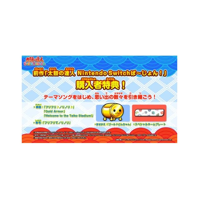相棒のどんちゃん、オミコシティで出会ったくもきゅんと一緒に太鼓マスターを目指そう! 収録曲は「紅蓮華」「Feel Special」「夜に駆ける」など前作を超える76曲を収録! 苦手な部分を繰り返し練習してスキルアップできる「上達サポート」や、世界中のプレイヤーと演奏バトルを楽しめる「オンラインランクマッチ」! 他にも、おもちゃでデッキを組んで戦う「ドンカツおもちゃ大戦」、4人でライブの成功を目指す「どんちゃんバンド」などみんなで遊べる新モードも搭載!