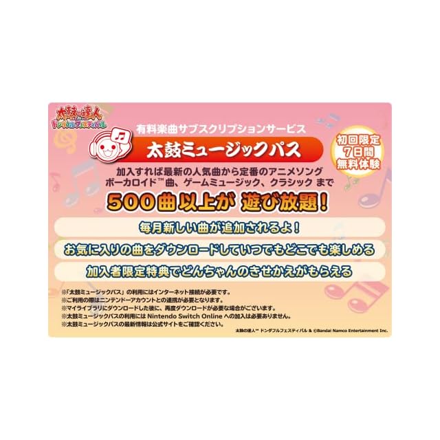 さらに、500曲以上が遊び放題になる有料楽曲サブスクリプションサービス「太鼓ミュージックパス」も登場!