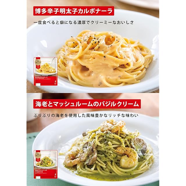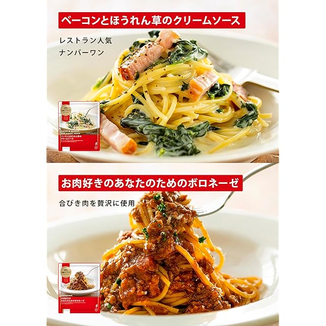 【内容】・ベーコンとほうれん草のクリームソース(290g)・お肉好きのためのあなたのためのボロネーゼ(270g)・なすとひき肉の辛味スパゲティ(290g)・糸ひきモッツァレラチーズのトマトソース(285g)・博多辛子明太子カルボナーラ(265g)・海老とマッシュルームのバジルクリーム(276g)【お召し上がり方】電子レンジで500W:約5分15秒/600W:約4分30秒 ※商品によって異なりますので商品裏面をご確認ください。【賞味期限】製造日から9か月 【保存方法】-18℃以下で保存してください。