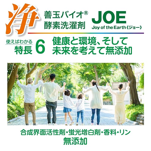 原材料: 界面活性剤(0.5%石けん(脂肪酸ナトリウム))・アルカリ剤(炭酸塩)・水軟化剤(クエン酸ナトリウム)・分散剤・再汚染防止剤(カルボキシメチルセルロース)・漂白剤(酵素系)・酵素