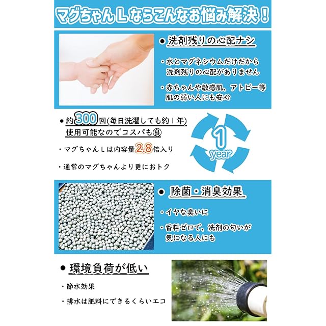 ✅【商品説明】洗たくマグちゃんは、高純度のマグネシウム99.9%を使って水素とアルカリイオン水を生成し部屋干しの嫌な臭いの原因となるカビや汚れをキレイに落とす今までにないマグネシウムで洗う新発想の洗濯用品です。
