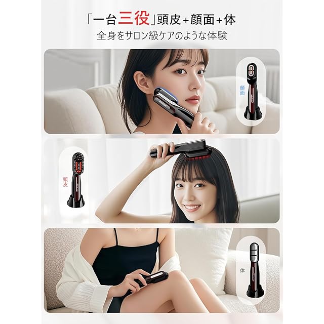 【3D美容ケア・美顔器】EMS電気刺激の頭皮+顔面+体三つのアタッチメント付属。頭筋・表情筋・体の筋肉を科学したEMS刺激で筋肉をトレーニングし、毎日のが効率的にアップできます。1本3役でしっかりと、持続しやすいスキンのリフトケアを実感します。【2025新登場】頭皮やお肌をしっかりとにケア!