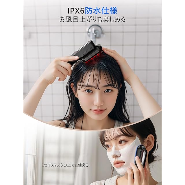 【お風呂でも使える】IPX6防水でお風呂上がりの濡れた髪やフェイスマスクの上からも使えます。 【毎日使う推奨】使い続けやすい仕様で、使うたびに効果がますます実感します。毎日ルーティンをエステタイムに入れましょう。