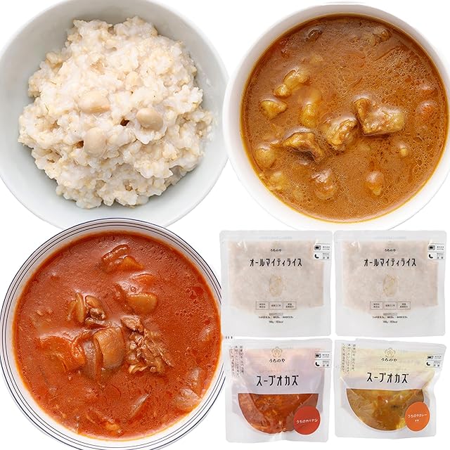 タンパク質、炭水化物、脂質のPFCバランスのとれた新しい主食「オールマイティライス」と「ルウ不使用」にこだわったお惣菜屋のカレーとハヤシをセットにしました。<br> 電子レンジで温め可能なので、簡単、手軽にお召し上がりいただけます。<br><br> 【オールマイティライス】<br> 常温保存で製造から2年の賞味期限。食べて整える、新しい主食のかたち。<br> タンパク質、炭水化物、脂質のPFCバランスのとれた「オールマイティライスは日本の食の素材本来の旨味を感じられる主食の新しいカタチです。<br> 栄養過多の現代人に。1日3食のうちの1食の置き換えをお勧めします。<br><br> 【うちのやカレー】<br> 常温保存で製造より2年の賞味期限。<br> おそうざい屋のカレーをコンセプトに作りました。<br> ルウ不使用にこだわった、コクのある牛すじカレーです。<br><br> 【うちのやハヤシ】<br> 常温保存で製造より2年の賞味期限。<br> おそうざい屋のカレーをコンセプトに作りました。<br> ルウ不使用にこだわった、コクのある牛すじカレーです。