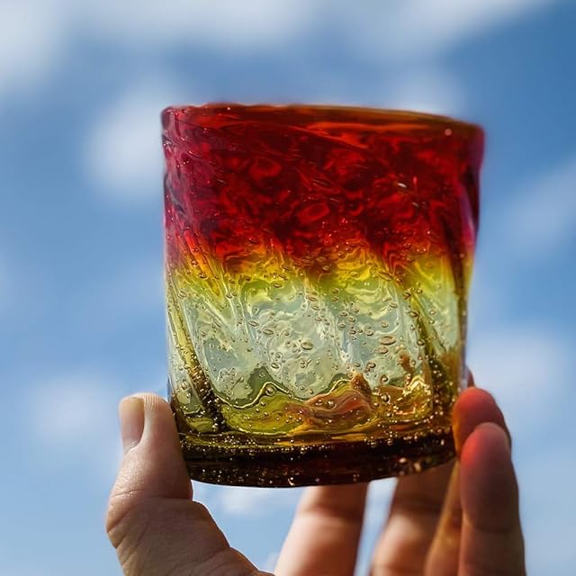 くば笠屋 琉球ガラス 琉球グラス ロックグラス 沖縄土産 美ら海ロックグラス レッド×イエロー 冷茶グラス コップ カップ