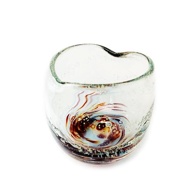くば笠屋 琉球ガラス 琉球グラス 冷茶グラス 蛍石入り 沖縄土産 LOVE&STARハートグラス オーロラリッチ 赤×紫×水 蓄光 光る