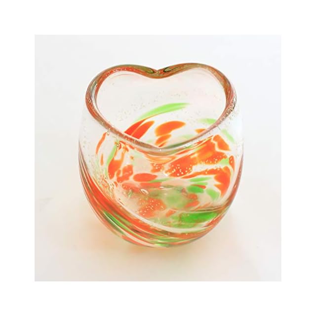 商品名:くば笠屋 琉球ガラス 琉球グラス 冷茶グラス 蛍石入り 沖縄土産 LOVE&STARハートグラス サンセットグリーン 橙×緑 蓄光 光る