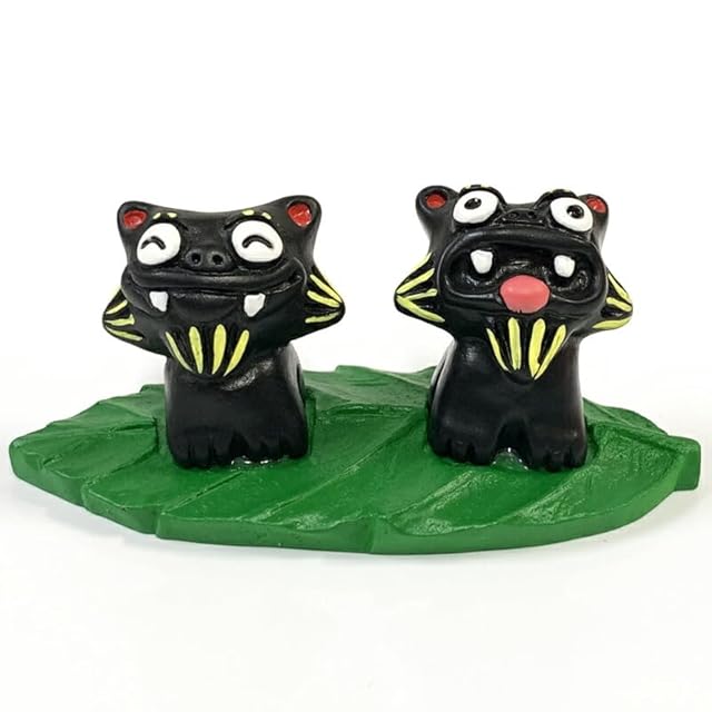 商品名:くば笠屋 シーサー 置物 沖縄土産 玄関 ペア プチシーサー 黒 開運 運気 風水 厄除け 縁起物 琉球