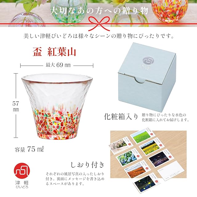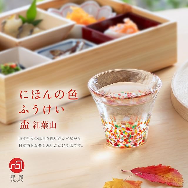 アデリア(ADERIA) 津軽びいどろ にほんの色 ふうけい 盃 紅葉山 75ml 化粧箱入 日本製 ぐい呑み お猪口 日本酒 グラス ガラス ギフト 女性 母の日 父の日 夫婦 男性 引越し祝い 結婚 挨拶回り プチ 退職 プレゼント 誕生日 贈り物 青森伝統工芸 ハンドメイド 日本製 F75418