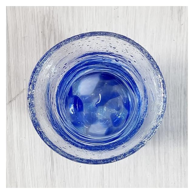 商品名:くば笠屋 琉球ガラス 琉球グラス ロックグラス 蛍石入り 沖縄土産 ホタルウェイブグラス 青 蓄光 光る