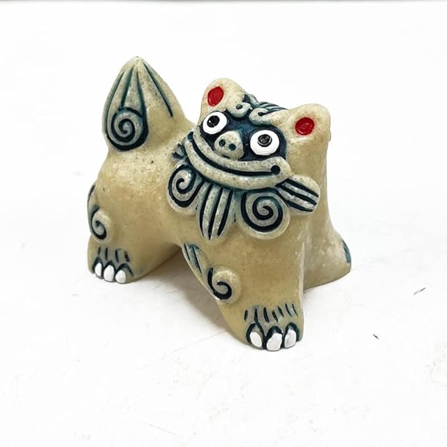 >>シーサーとは<<<br> シーサーのルーツは、エジプトのスフィンクスが起源ではないかと言われ、琉球王国の大航海時代(14~15世紀)エジプト、シルクロードを経由し、中国から琉球に伝わったものと考えられています。<br> 魔除けや守り神として沖縄全土に広まったシーサーはオスの口から幸せ(福)を取り込み、口が閉まっているメスが幸せを逃がさないと言われています。<br> またシーサーは、魔物(マジムシ)を避けるのではなく、浄化する力があるとも言われています。<br> 沖縄の守り神は、夫婦円満の象徴でもあり贈り物にぴったりです♪<br> <br> >>置き方<<<br> シーサーと向かい合って右にオス(口が開いている方)左にメス(口が閉じている方)を置きます。<br> 神社の入口に狛犬や阿吽の像が置かれていますが、これも一種の結界で、シーサーは、狛犬や阿吽の像と同様の働きをしてくれると言われています。<br> 南の方角へ向けると火災の防止に、北東の方角へ向けると台風から家を守る水難防止になると言われてます。<br> 魔物(マジムシ)は人の通り道を通って来ると言われており、玄関の内側か外側に置くかはどちらでも構いません。<br> 大事なのは、自分が置きたい所・気持ちよく飾れる場所が一番です。<br> <br> >>座と横の意味<<<br> 座姿「腰を据えてしっかり家を守る」<br> 横姿「尻上がりに物事がうまくいく」