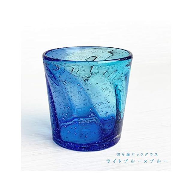 くば笠屋 琉球ガラス 琉球グラス ロックグラス 沖縄土産 美ら海ロックグラス ライトブルー×ブルー 冷茶グラス コップ カップ