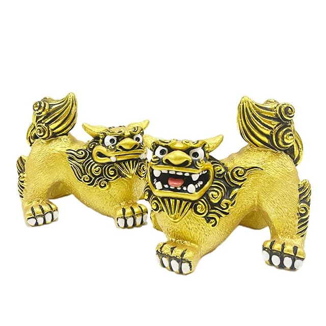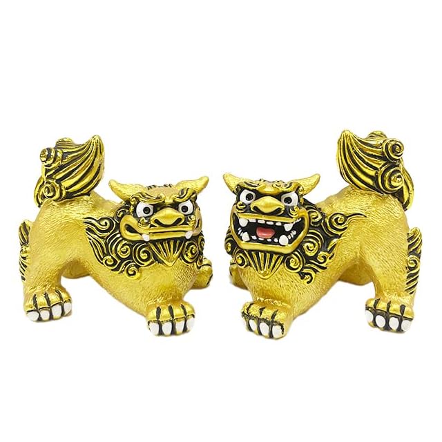 商品名:金運獅子シーサー(オス&メスのペア) <br/> 商品説明:家の守り神のシーサーはオスの口から幸せ(福)を取り込み、口が閉じているメスが幸せを逃がさないと言われています。お客様がご使用のパソコンモニターやスマートフォンなど、ご覧になる環境によって、色味が若干異なる場合があります。あらかじめご了承ください。