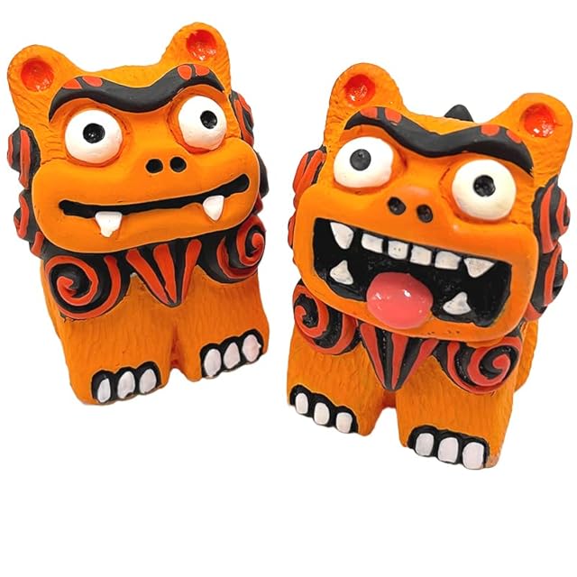>>シーサーとは<<<br> シーサーのルーツは、エジプトのスフィンクスが起源ではないかと言われ、琉球王国の大航海時代(14~15世紀)エジプト、シルクロードを経由し、中国から琉球に伝わったものと考えられています。<br> 魔除けや守り神として沖縄全土に広まったシーサーはオスの口から幸せ(福)を取り込み、口が閉まっているメスが幸せを逃がさないと言われています。<br> またシーサーは、魔物(マジムシ)を避けるのではなく、浄化する力があるとも言われています。<br> 沖縄の守り神は、夫婦円満の象徴でもあり贈り物にぴったりです♪<br> <br> >>置き方<<<br> シーサーと向かい合って右にオス(口が開いている方)左にメス(口が閉じている方)を置きます。<br> 神社の入口に狛犬や阿吽の像が置かれていますが、これも一種の結界で、シーサーは、狛犬や阿吽の像と同様の働きをしてくれると言われています。<br> 南の方角へ向けると火災の防止に、北東の方角へ向けると台風から家を守る水難防止になると言われてます。<br> 魔物(マジムシ)は人の通り道を通って来ると言われており、玄関の内側か外側に置くかはどちらでも構いません。<br> 大事なのは、自分が置きたい所・気持ちよく飾れる場所が一番です。<br> <br> >>座と横の意味<<<br> 座姿「腰を据えてしっかり家を守る」<br> 横姿「尻上がりに物事がうまくいく」