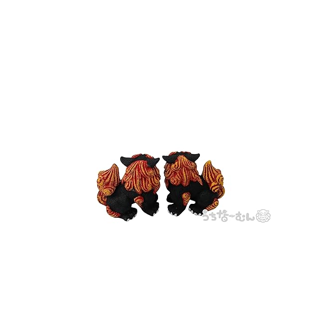 高さ:約7cm 横幅:約7.5cm 奥行:約6cm シーサーとは、沖縄県の魔除けや悪霊を払うと言われている獅子の像のことです。 向かって右が口を開けた雄、左が口を閉じた雌とされています。 口を開けている「雄」は、悪霊に噛みつき追い払う役割、口を閉じている「雌」は、幸せを逃さない役割があるとされています。