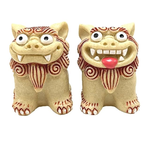 >>シーサーとは<<<br> シーサーのルーツは、エジプトのスフィンクスが起源ではないかと言われ、琉球王国の大航海時代(14~15世紀)エジプト、シルクロードを経由し、中国から琉球に伝わったものと考えられています。<br> 魔除けや守り神として沖縄全土に広まったシーサーはオスの口から幸せ(福)を取り込み、口が閉まっているメスが幸せを逃がさないと言われています。<br> またシーサーは、魔物(マジムシ)を避けるのではなく、浄化する力があるとも言われています。<br> 沖縄の守り神は、夫婦円満の象徴でもあり贈り物にぴったりです♪<br> <br> >>置き方<<<br> シーサーと向かい合って右にオス(口が開いている方)左にメス(口が閉じている方)を置きます。<br> 神社の入口に狛犬や阿吽の像が置かれていますが、これも一種の結界で、シーサーは、狛犬や阿吽の像と同様の働きをしてくれると言われています。<br> 南の方角へ向けると火災の防止に、北東の方角へ向けると台風から家を守る水難防止になると言われてます。<br> 魔物(マジムシ)は人の通り道を通って来ると言われており、玄関の内側か外側に置くかはどちらでも構いません。<br> 大事なのは、自分が置きたい所・気持ちよく飾れる場所が一番です。<br> <br> >>座と横の意味<<<br> 座姿「腰を据えてしっかり家を守る」<br> 横姿「尻上がりに物事がうまくいく」