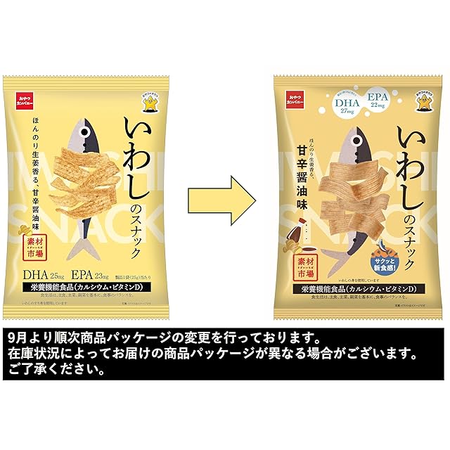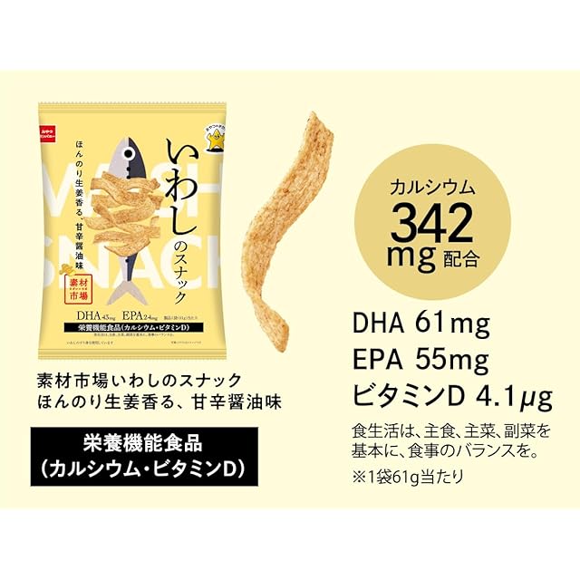 商品名:【公式】素材市場 いわしのスナック ほんのり生姜香る 甘辛醬油味小袋 25g×24袋 | 栄養機能食品 カルシウム ビタミンD DHA EPA イワシチップス お魚のスナック おさかなせんべい ローリングストック おやつのチカラ おやつカンパニー