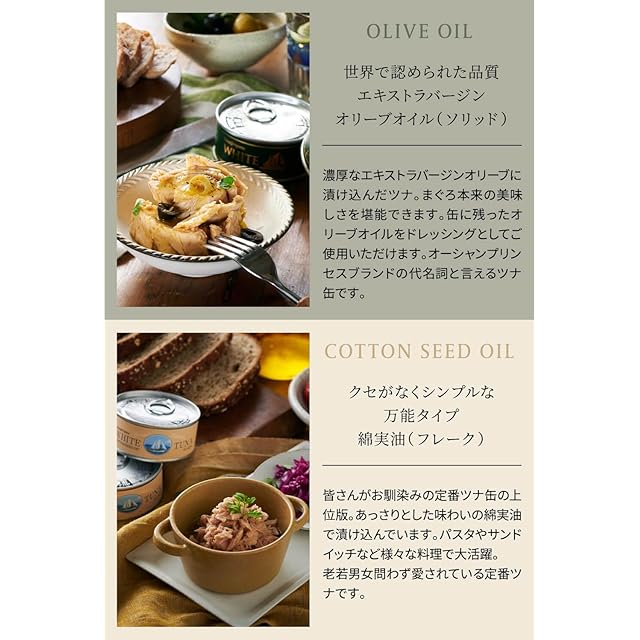 商品名:OceanPrincess WHITE TUNA 贅沢ツナ缶 6缶セット (ギフト/バラエティーツナ) 食べ比べ 高級食材 (国産/常温保存) ツナ 缶詰 詰め合わせ (プレゼント/内祝い/贈り物)