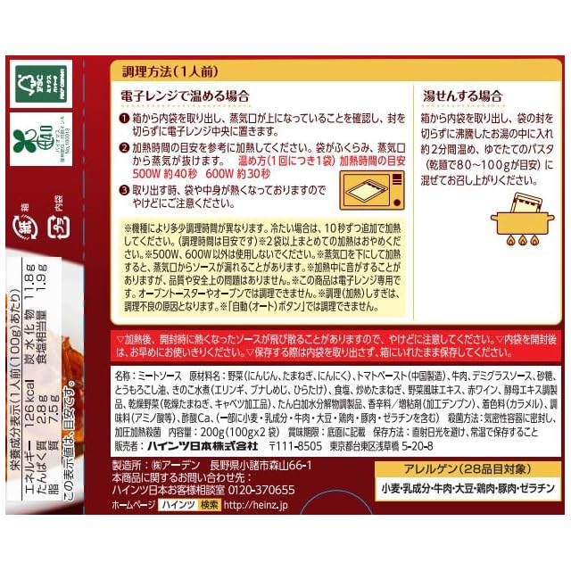 商品名:ハインツ(HEINZ)もぐもぐパスタ 3種のきのこのミートソース 2袋入り(2人前)×10個セット