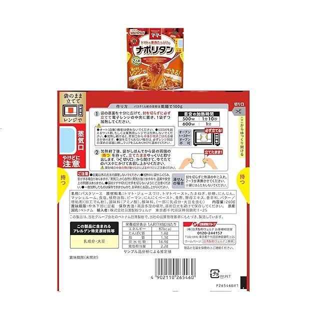 商品名:マ・マーたっぷりシリーズ2人前 5種類パスタソースセット(ミートソース、ミートソースマッシュルーム入り、ナポリタン、カルボナーラ、あさりコンソメ) 【セット買い】