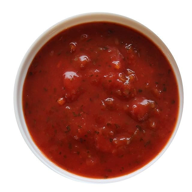 トマト、ピーマン、たまねぎ、ハラペーニョなどの固形野菜がたっぷり入ったスパイシーソース