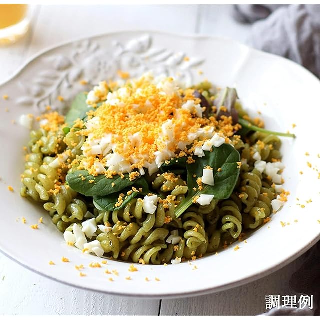原材料:植物油脂(スペイン製造、国内製造)、粉末水あめ、バジルペースト、バジル、食塩、香味油、砂糖、ポテトパウダー、チーズ、乳等を主要原料とする食品、にんにく、松の実ペースト、香辛料/調味料(アミノ酸等)、クチナシ色素、増粘剤(キサンタンガム)、紅花色素、(一部に乳成分を含む)