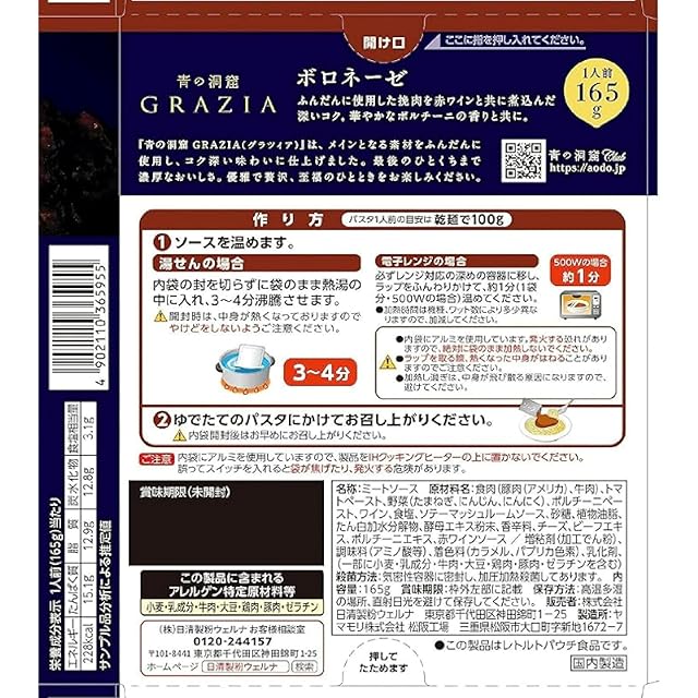 商品名:青の洞窟 GRAZIA ボロネーゼ 165g×5箱