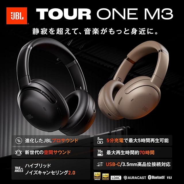 JBL TOUR ONE M3 ハイブリッドノイズキャンセリング/Auracast対応/Bluetooth対応/ハイレゾ/LDAC/マルチポイント/オーバーイヤーヘッドホン/ブラック/JBLTOURONEM3BLK