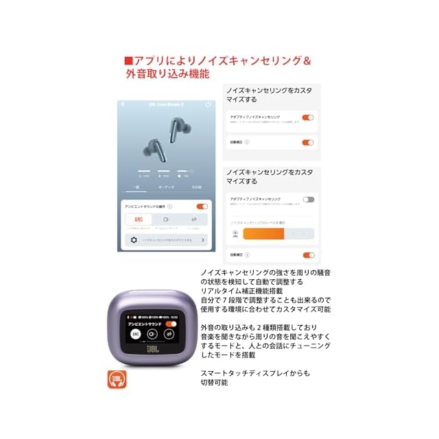 商品名:JBL LIVE BEAM 3 ワイヤレスイヤホン スマート充電ケース/LDAC対応ハイレゾ/マルチポイント/ハイブリッド ノイズキャンセリング/IP55防水/ワイヤレス充電対応/パープル/JBLLIVEBEAM3PUR