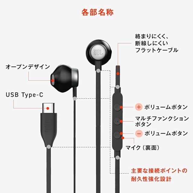 商品名:JBL TUNE 305C 有線インイヤーイヤホン ハイレゾ 96 kHz/24 bits プリセットEQ USB Type-C 12.5mmダイナミックドライバー オープンタイプイヤホン マイク内蔵 フラットケーブル (レッド)