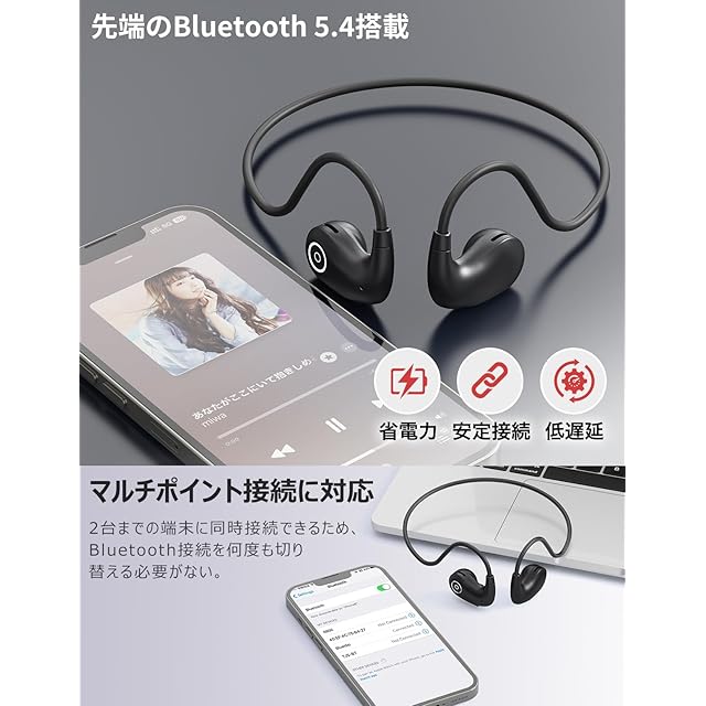 【マルチポイント対応・Bluetooth 5.4瞬時に接続】音飛び、途切れ、遅延などの問題を改善しました。マルチポイント接続に対応し、2台までの端末に同時接続が可能で、接続の切り替えがスムーズです。従来のBluetoothヘッドホンに比べ、3倍のデータ転送速度と4倍の通信範囲を提供可能な業界最先端のBluetooth 5.4を採用。低遅延で瞬時に接続可能、10メートルの範囲内で安心して利用できます。