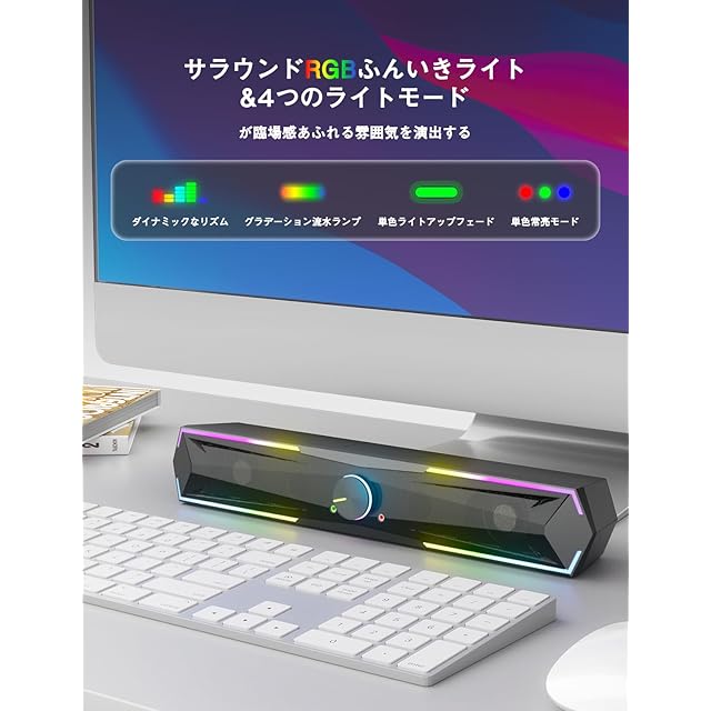 Kstime【最新Bluetooth5.4 & USBダイレクト】PCスピーカー サウンドバー 10W RGB ゲーミングスピーカー 六つのスピーカーユニット 二重対称インバーターチューブ ステレオ 大音量&豊かな低音 ラップトップ、タブレット、スマートフォンに対応、USB給電式のパソコンスピーカー