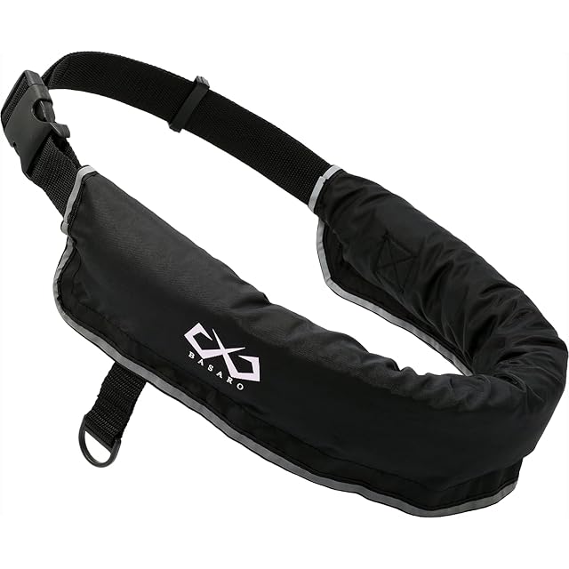 ◆自動膨張式ライフジャケット:センサーが水と接触して水圧を感知すると膨張するタイプです。<br> このタイプのライフジャケットにも手動膨張用の索(紐)が取り付けられており、緊急時はご自身の判断で<br> ライフジャケットを膨張させる事も可能です。<br> ◆このライフジャケットは腰巻(ベルトタイプ)ですので、腰に巻いて着用下さい。<br> 着用サイズ:80~145cmまでのフリーサイズです。<br> ◆ライフジャケットのボンベ交換時期:約2-3年に1回でお願いします。<br> ◆ライフジャケットの点検:使用前に必ず点検をして下さい。<br> ◆ライフジャケットの保管について:車内などの室内が高温になる可能性がある場所での保管はおやめ下さい。<br> <br> 【ライフジャケットを一度使用してからの再使用について】<br> このライフジャケットは一度使用してもボンベ交換を行うと再使用可能です。<br> 再使用後は必ずライフジャケットの点検を行って下さい。<br> <br> 【ライフジャケットに搭載されているボンベについて】<br> 搭載されているボンベはCO2高圧縮ボンベです。このボンベはライフジャケットのフロートを瞬時に膨らませる様に<br> 設計されております。完全膨張は約3秒程です。<br> <br> 【ライフジャケット用ボンベユニットについて】<br> BASAROのライフジャケットボンベユニットは通常モデルより15%の小型モデルです。<br> このボンベユニットを小型化する事によりボンベから出るCO2がより素早く瞬時にフロートに充填される様にする為です。<br> <br> 【ライフジャケットのリフレクションリボンにつて】<br> ライフジャケットに取り付けられているリフレクションリボンは一般流通モデルのリフレクション機能がある布と違い<br> 少しの光にも反応するBASARO独自開発の反射布です。夜間釣行の際に自身の居場所を知らせる為に搭載しております。<br>
