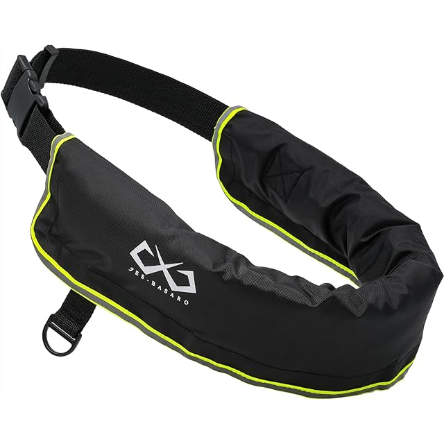 ◆自動膨張式ライフジャケット:センサーが水と接触して水圧を感知すると膨張するタイプです。<br> このタイプのライフジャケットにも手動膨張用の索(紐)が取り付けられており、緊急時はご自身の判断で<br> ライフジャケットを膨張させる事も可能です。<br> ◆このライフジャケットは腰巻(ベルトタイプ)ですので、腰に巻いて着用下さい。<br> 着用サイズ:80~145cmまでのフリーサイズです。<br> ◆ライフジャケットのボンベ交換時期:約2-3年に1回でお願いします。<br> ◆ライフジャケットの点検:使用前に必ず点検をして下さい。<br> ◆ライフジャケットの保管について:車内などの室内が高温になる可能性がある場所での保管はおやめ下さい。<br> <br> 【ライフジャケットを一度使用してからの再使用について】<br> このライフジャケットは一度使用してもボンベ交換を行うと再使用可能です。<br> 再使用後は必ずライフジャケットの点検を行って下さい。<br> <br> 【ライフジャケットに搭載されているボンベについて】<br> 搭載されているボンベはCO2高圧縮ボンベです。このボンベはライフジャケットのフロートを瞬時に膨らませる様に<br> 設計されております。完全膨張は約3秒程です。<br> <br> 【ライフジャケット用ボンベユニットについて】<br> BASAROのライフジャケットボンベユニットは通常モデルより15%の小型モデルです。<br> このボンベユニットを小型化する事によりボンベから出るCO2がより素早く瞬時にフロートに充填される様にする為です。<br> <br> 【ライフジャケットのリフレクションリボンにつて】<br> ライフジャケットに取り付けられているリフレクションリボンは一般流通モデルのリフレクション機能がある布と違い<br> 少しの光にも反応するBASARO独自開発の反射布です。夜間釣行の際に自身の居場所を知らせる為に搭載しております。<br>