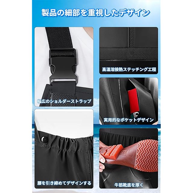 ユニバーサルな用途: 伸縮性のある肩紐でフィット感を調節可能。サーフィン、川釣り、農作業、漁業、除雪、洗車など様々なシーンで活躍。釣り道具を収納できる収納袋付き伸縮性素材の肩ベルトは、快適なフィット感を提供し、さまざまな体型に対応します。