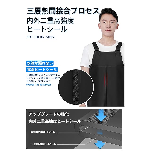 高機能素材:このウェーダーは、PVC素材を採用し、内側には通気性のある編み地を使用しています。防水性、透湿性に優れるだけでなく、耐水性、防油性、耐酸アルカリ性も備えています。