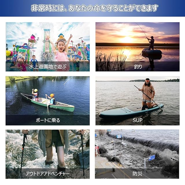 【幅広く活躍】ヨット、セーリング、お釣り、狩猟、カヌー、パドルボート(SUP)、プールなどのアウトドア活動 はもちろんのこと、津波、台風など災害や緊急な場合にも活用でき、水難事故から身を保護してくれます
