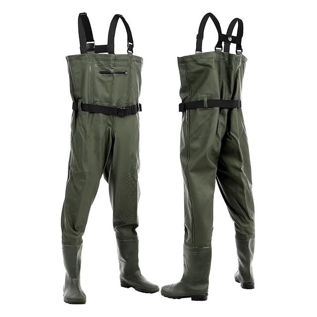 [unizom] ウェーダー 釣り 胴長 長靴 【ヒザ補強・簡単脱着・動きやすい】 ラジアルソール 完全防水 丈夫 チェストハイ フィッシングウェーダー (25cm~26cm)
