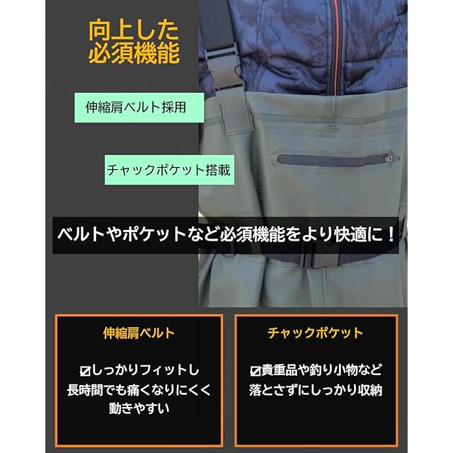 商品名:[unizom] ウェーダー 釣り 胴長 長靴 【ヒザ補強・簡単脱着・動きやすい】 ラジアルソール 完全防水 丈夫 チェストハイ フィッシングウェーダー (27cm~28cm)