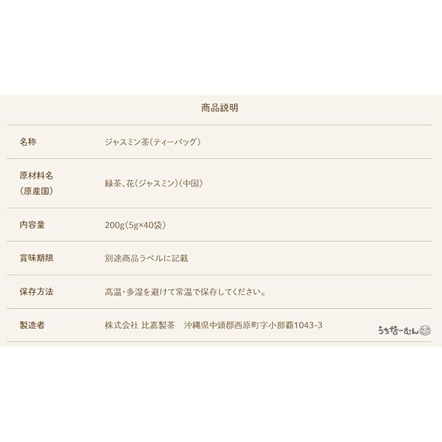 商品名:比嘉製茶 お徳用さんぴん茶 ティーバッグ 5g×40P×8袋 + うちなーむんシール