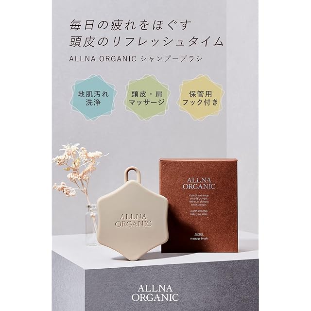 ✅【 頭皮のリフレッシュタイム 】頭皮や肩のマッサージに!「お風呂・お仕事中・リラックスしたい時」ALLNA ORGANIC のシャンプーブラシで毎日の疲れをほぐしましょう。✅【 頭皮にベストな設計 】人間工学に基づき開発しました。 ★握りやすい「形」 ★髪が絡まりにくい「突起の配置」 ★頭皮が傷つきにくくマッサージ圧力を調整できる「硬さ」★シリコン樹脂で優れた「撥水性」✅【 こだわりのデザイン 】安定した状態で立てて置けるので、乾かしやすく清潔です。壁にかけられるS字フック付き♪✅【 使う場所を選ばない 】「インバス・アウトバス」どちらでも使えるので、好きなタイミングでマッサージできます。✅【 使用方法 】■インバス:髪をしっかり泡立てた状態で、ブラシを頭皮に当て、前後ジグザクと小刻みに軽く動かしながら洗います。 ■アウトバス:コリや疲れが気になる部分にブラシを当て、小さく円を描くようにゆっくりと動かしほぐします。