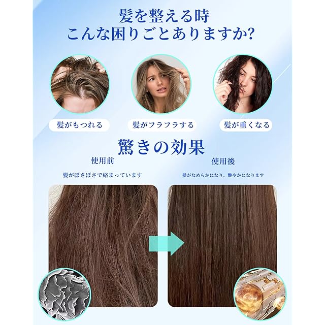 【多様な髪質に対応・プレゼント最適】パーマやカラーリング、繰り返しブリーチしたダメージ髪でもスムーズに梳かすことができ、髪の量が多い場合でも効率よく整えられます。機能性と美しいデザインを兼ね備えているため、誕生日や記念日のプレゼントに最適で、充実したアフターサービスで安心して使用できます。