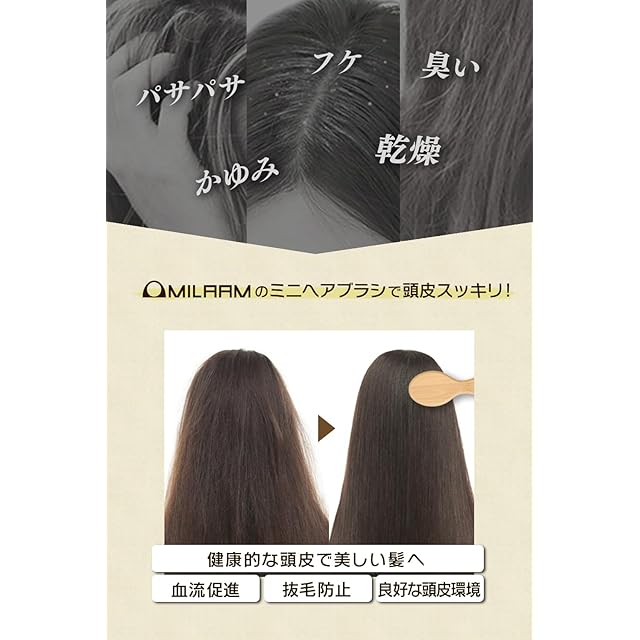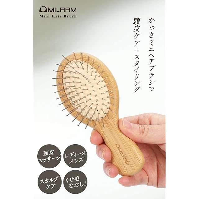 髪をとかしながら頭皮を心地よく刺激し健康的な髪質へ!小型で外出先にも手軽に持っていける日本ブランドMILAAMのミニヘアブラシ!